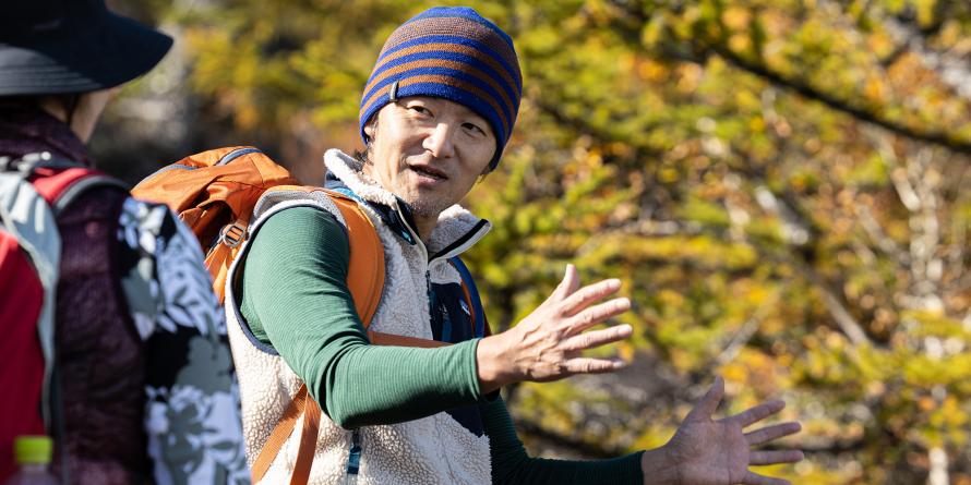 富士山を知り尽くしたガイド「ネイチャー岩崎さん」が自然・歴史・地形を解説。初心者も安心。
