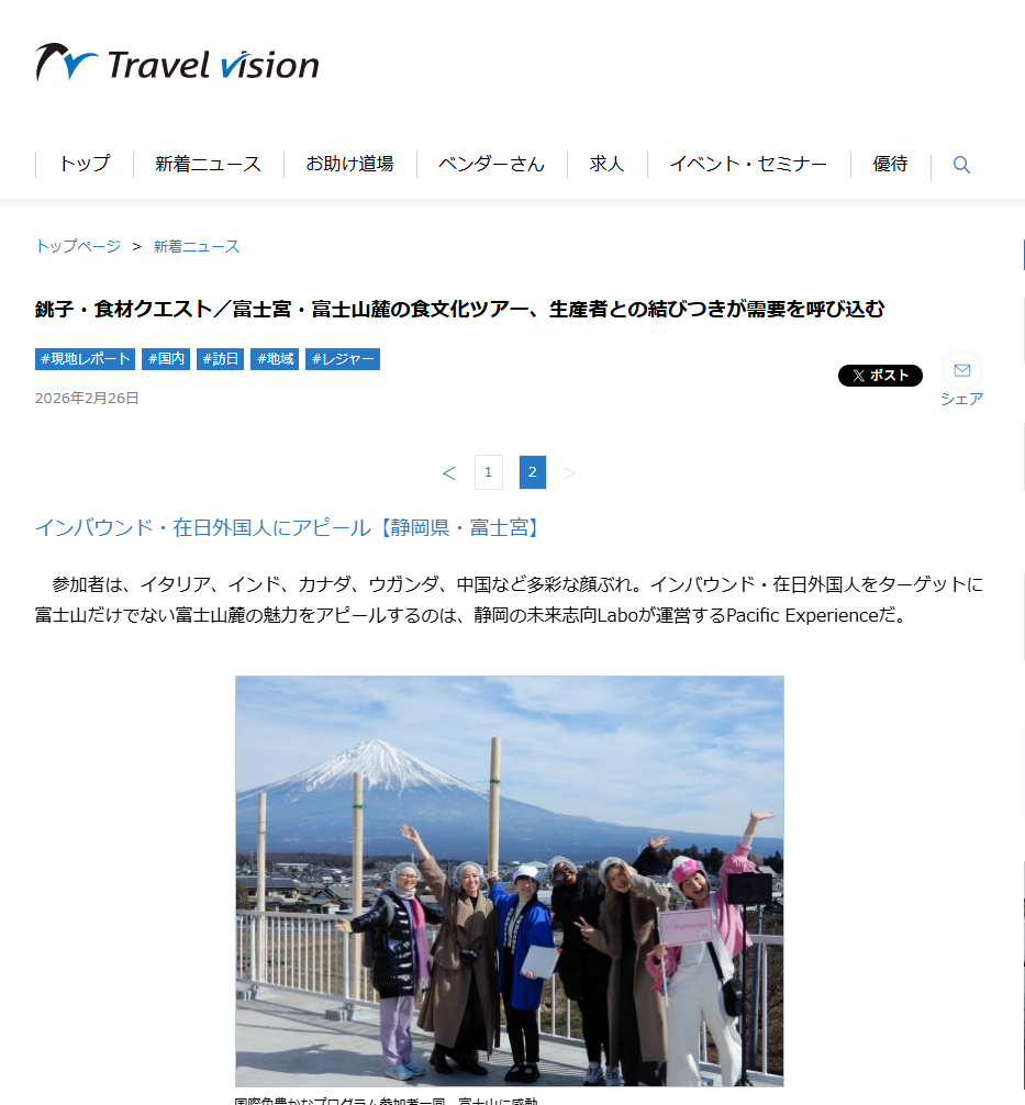 観光業界向けオンラインメディア「トラベルビジョン」にて、ツアー様子を掲載いただきました。